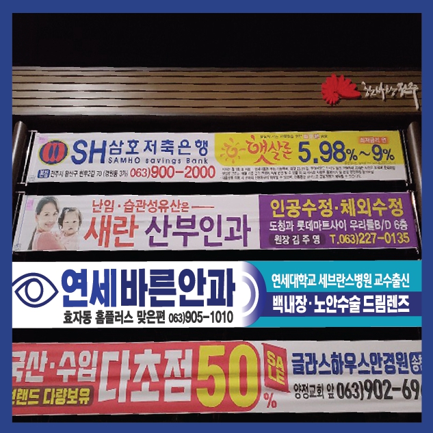 연세바른안과의원 페이지 정보 작성자 관리자 작성일21-01-12 19:33 댓글0건 관련링크 이전글 다음글 목록 본문 바른연세안과의원은 현수막광고를 진행하면서, 추가 택시광고로 같이 진행 함. 댓글목록 등록된 댓글이 없습니다. 이전글 다음글 목록